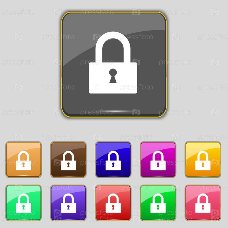 Значок замка знак. Локера символ. Красочные кнопки установки. Вектор