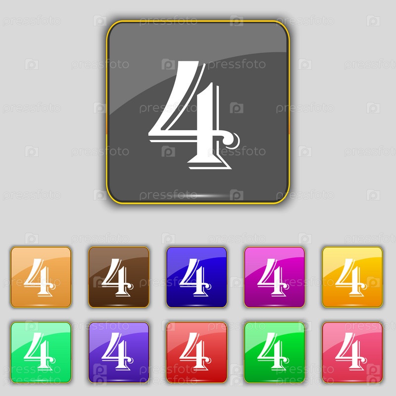 Номер четыре значок знак. Набор цветных кнопок. Вектор