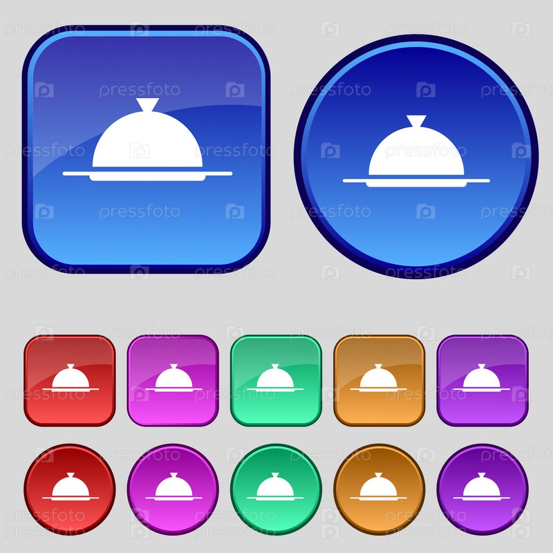 Еда блюдо порция знак значок. Сервировка стола в ресторане символ. Красочные кнопки установки. Вектор
