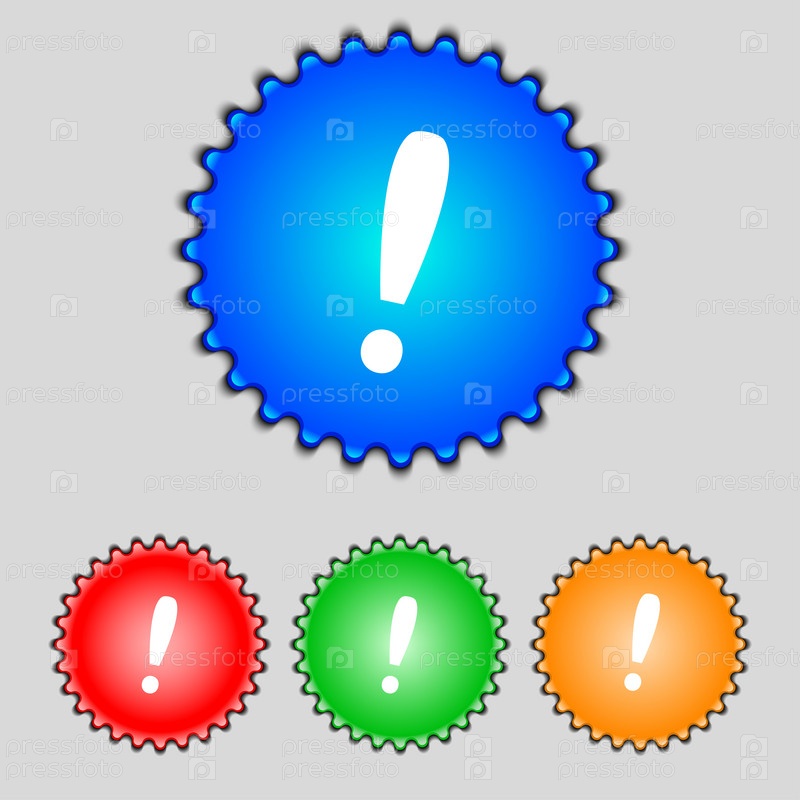 Знак восклицательный знак. Внимание речи пузырь символ. Красочные кнопки установки. Вектор