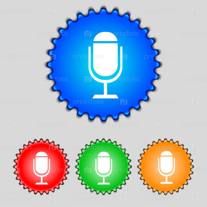 Значок микрофона. Символ динамика. Живая музыка знак. Установите красочные кнопки вектор