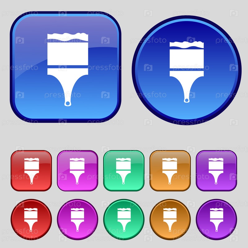 Краска кисти знак значок. Символ художник. Набор цветных кнопок. Вектор