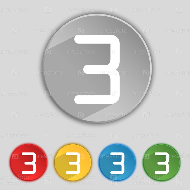 Третье место знак премии. Победитель символ. Шаг 3. Набор цветных кнопок. Вектор