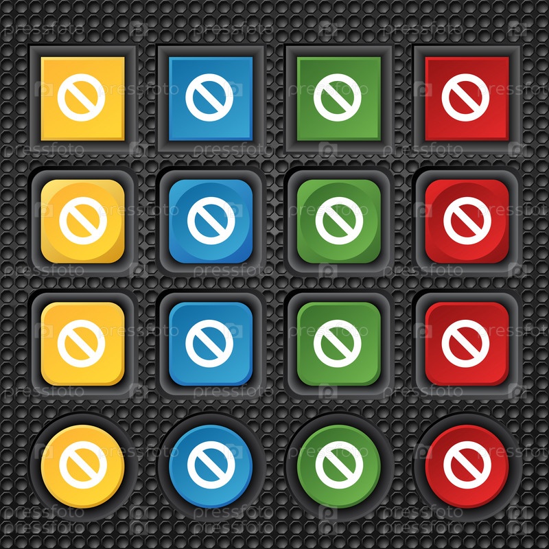 Иконка Стоп знак. Запрет на символ. Никаких признаков. Красочные кнопки установки. Вектор