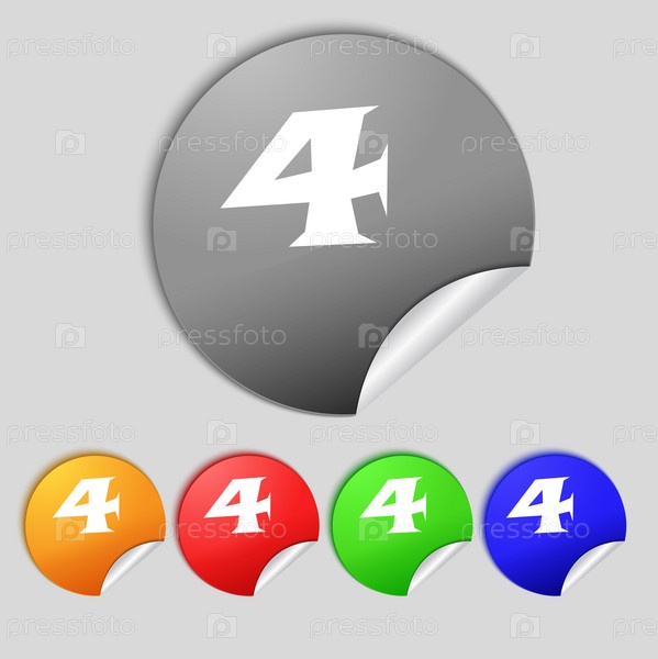 Номер четыре значок знак. Набор цветных кнопок. Вектор