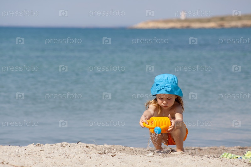 Маленькая девочка, играющая на пляже