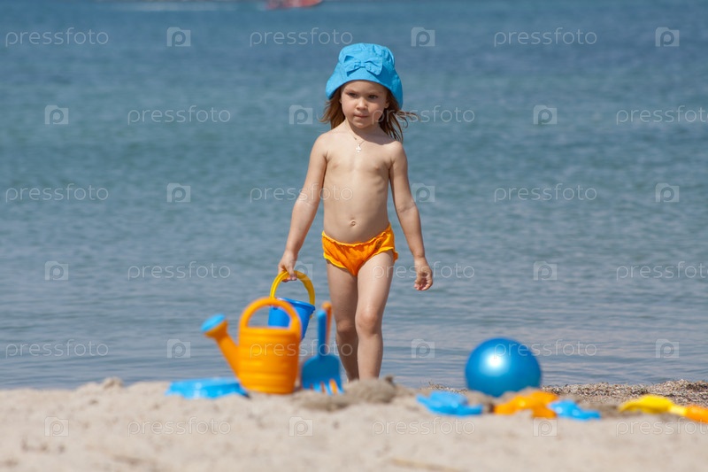 Маленькая девочка, играющая на пляже