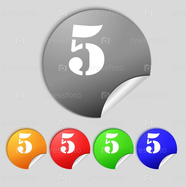 Номер пять значок знак. Набор цветных кнопок. Вектор