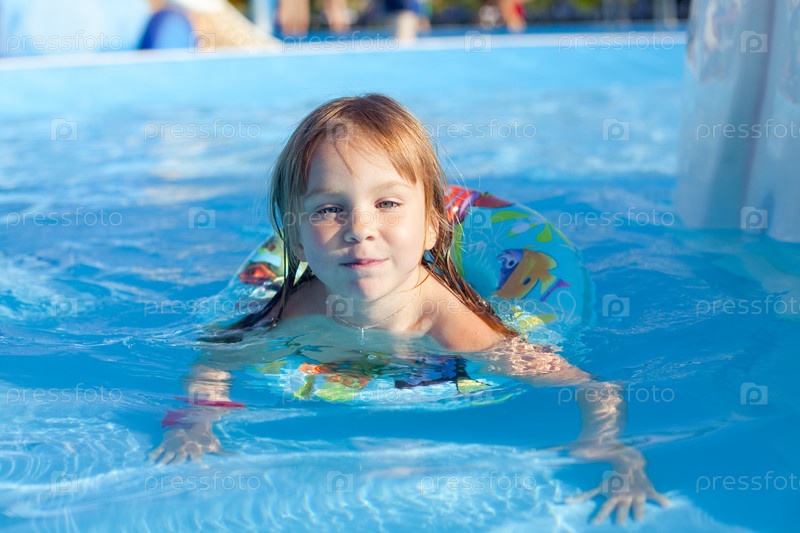 Маленькая девочка, плавающая в бассейне