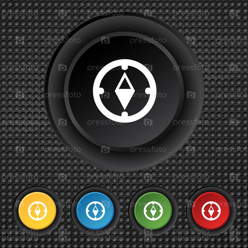 Иконка Знак компаса. Символ навигации WINDROSE. Красочные кнопки установки. Вектор