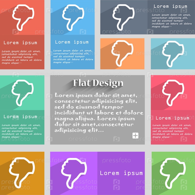 Не нравится значок знак. Большой палец вниз. Палец руки вниз символ. Набор цветных кнопок. Вектор