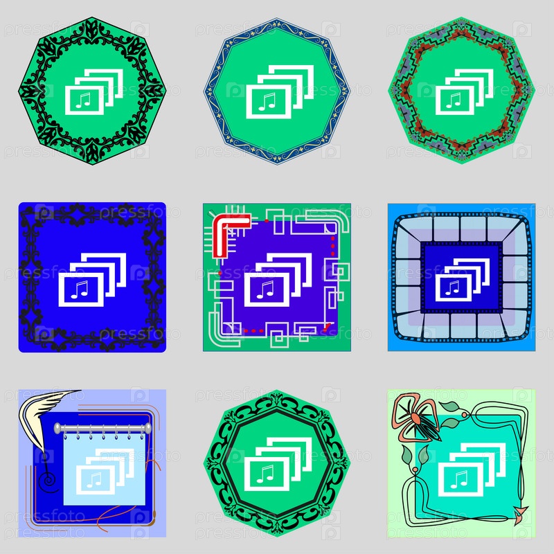 Знак знака формата MP3 музыка. Музыкальный символ. Красочные кнопки установки. Вектор
