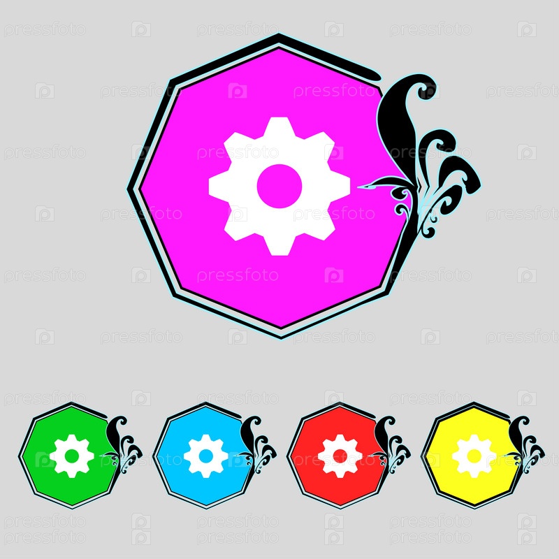 Винтик параметры знак значок. Зубчатая механизмом шестеренка. Красочные кнопки установки. Вектор