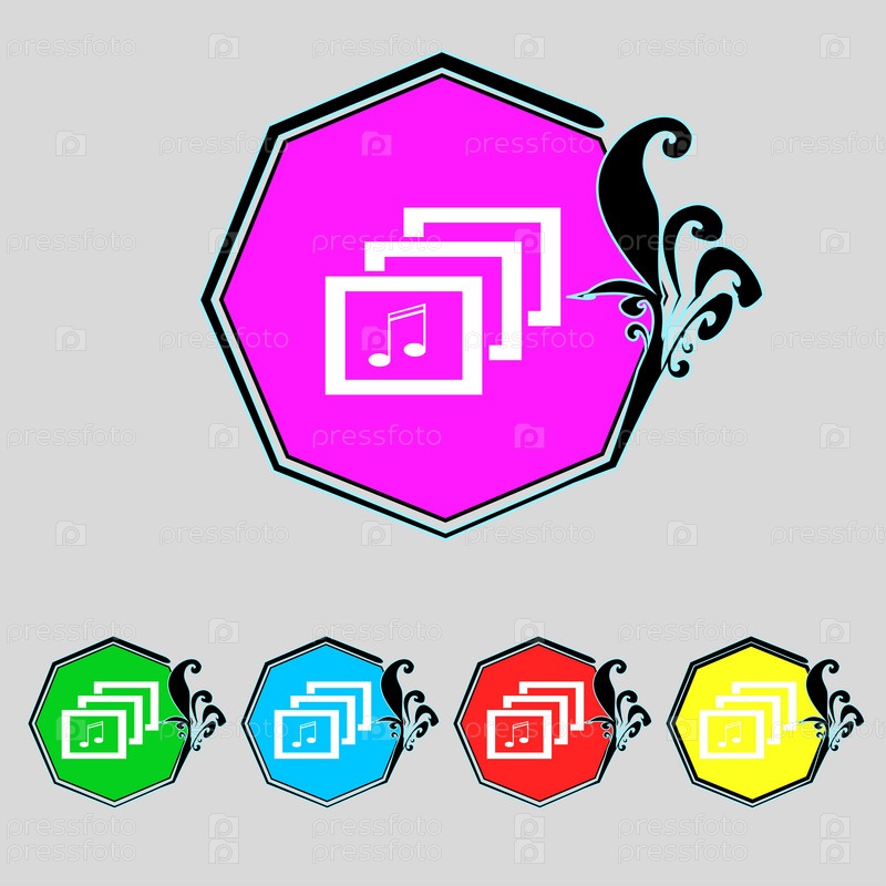 Знак знака формата MP3 музыка. Музыкальный символ. Красочные кнопки установки. Вектор