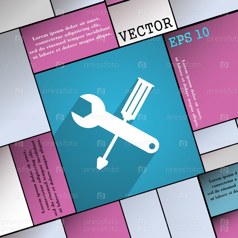 Символ значок гаечного ключа отвертки плоские современных веб-дизайна с длинной тенью и пространства для вашего текста. Вектор
