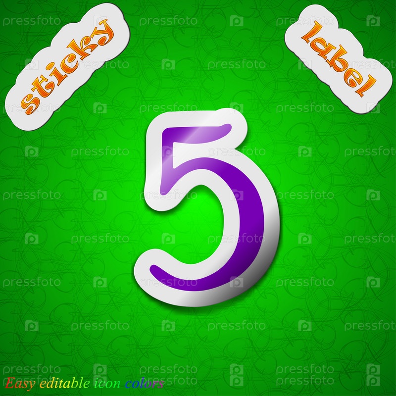 Номер пять значок знак. Символ шик Цветные наклейки на зеленом фоне. Вектор
