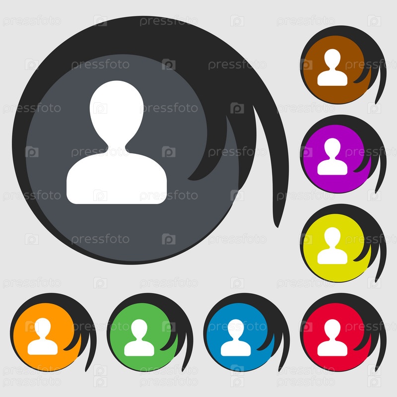 Значок мужской силуэт. Символ на восьми цветных кнопок. Вектор