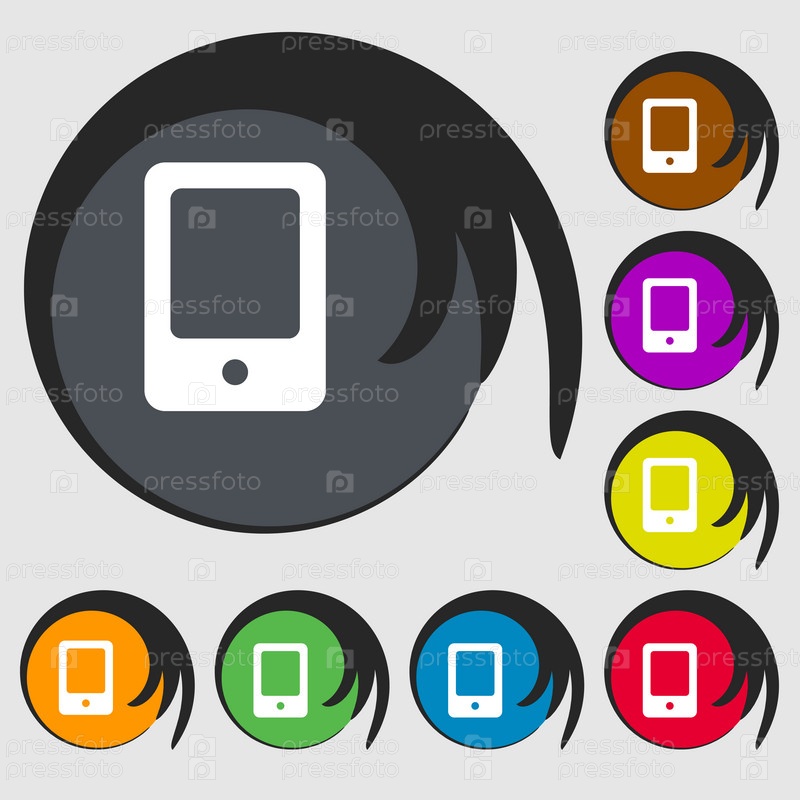 Планшетный компьютер значок знак. Символ на восьми цветных кнопок. Вектор