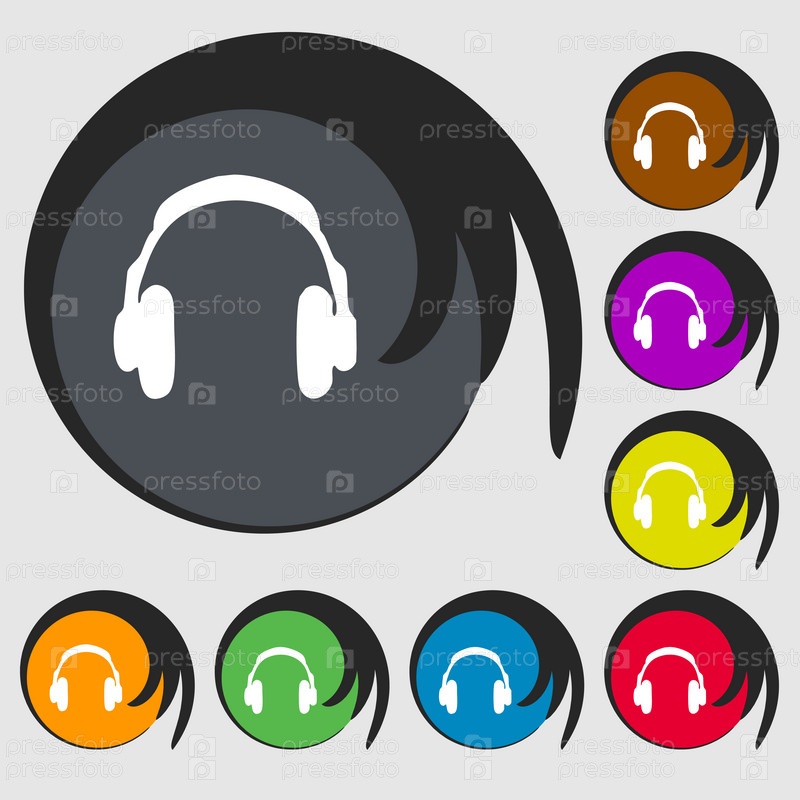Гарнитуры значок знак. Символ на восьми цветных кнопок. Вектор