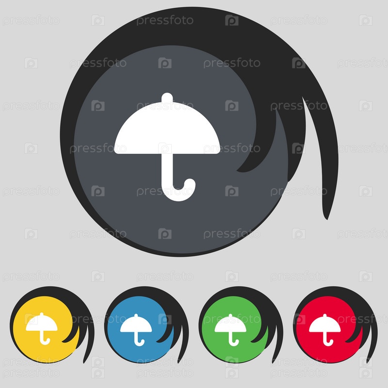 Зонтик значок знак. Символ на пять цветных кнопок. Вектор