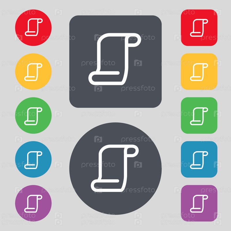 Значок прокрутки бумаги. Набор из 12 цветных кнопок. Плоский дизайн. Вектор