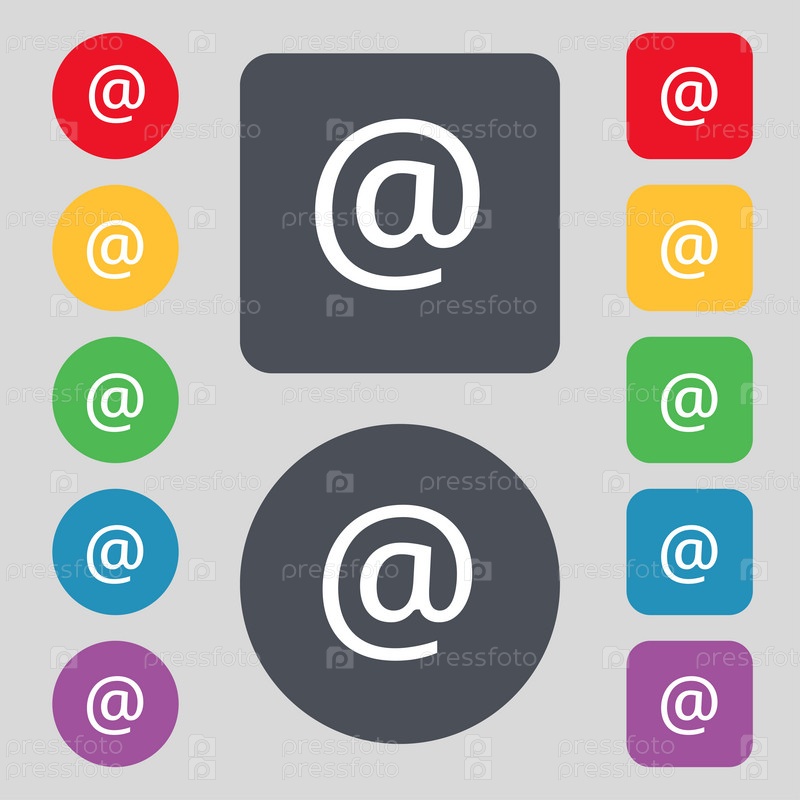Электронной почты значок знак. Набор из 12 цветных кнопок. Плоский дизайн. Вектор