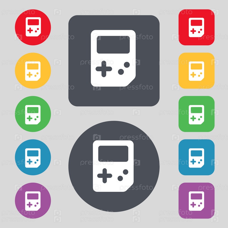 Тетрис значок знак. Набор из 12 цветных кнопок. Плоский дизайн. Вектор
