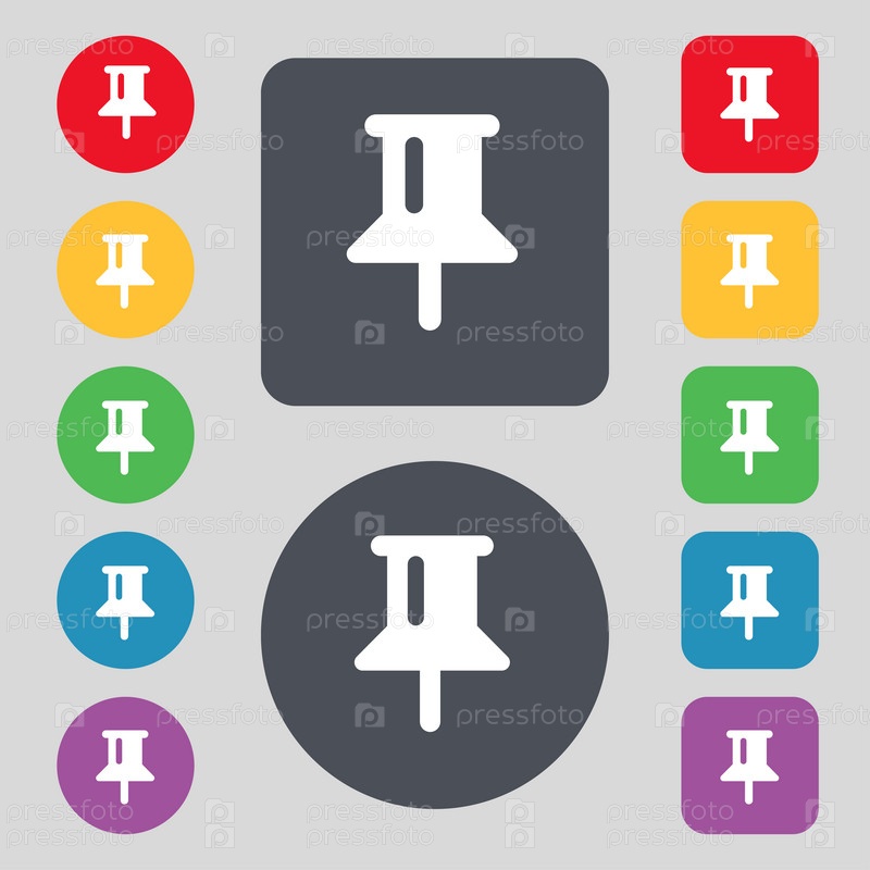 Показатель на карте, GPS местоположение значок знак. Набор из 12 цветных кнопок. Плоский дизайн. Вектор