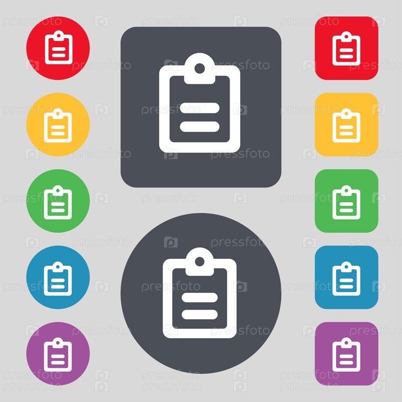 Текст файла значок знак. Набор из 12 цветных кнопок. Плоский дизайн. Вектор