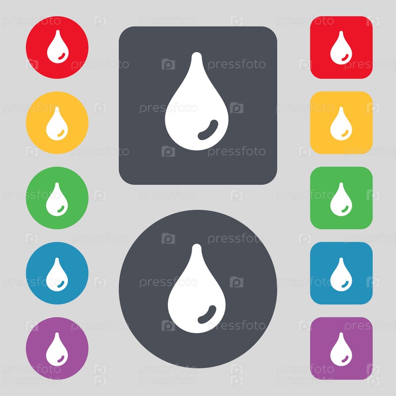Капля воды. Набор из 12 цветных кнопок. Плоский дизайн. Вектор