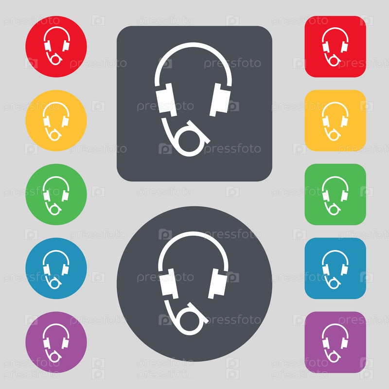 Гарнитуры значок знак. Набор из 12 цветных кнопок. Плоский дизайн. Вектор