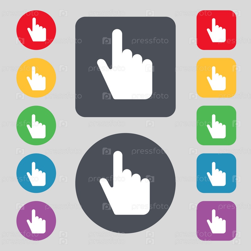 Значок курсора знак. Набор из 12 цветных кнопок. Плоский дизайн. Вектор