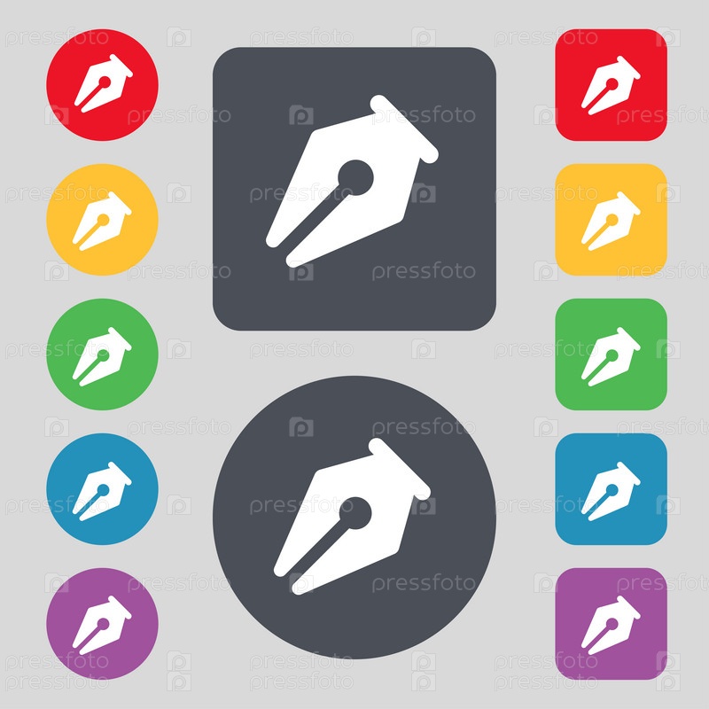 Карандаш значок знак. Набор из 12 цветных кнопок. Плоский дизайн. Вектор