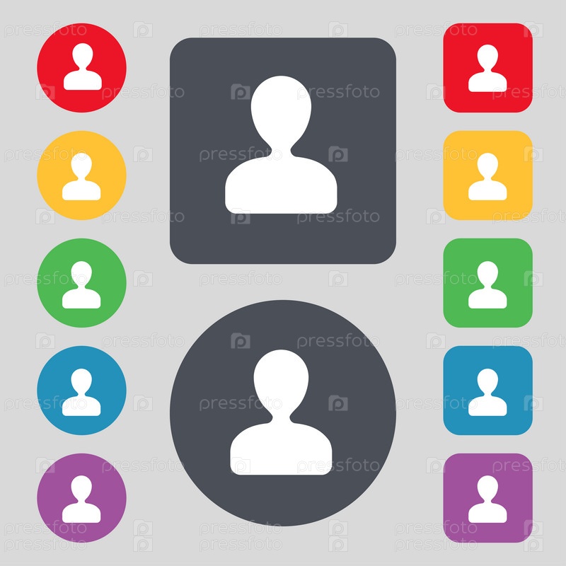 Значок знак мужской силуэт. Набор из 12 цветных кнопок. Плоский дизайн. Вектор
