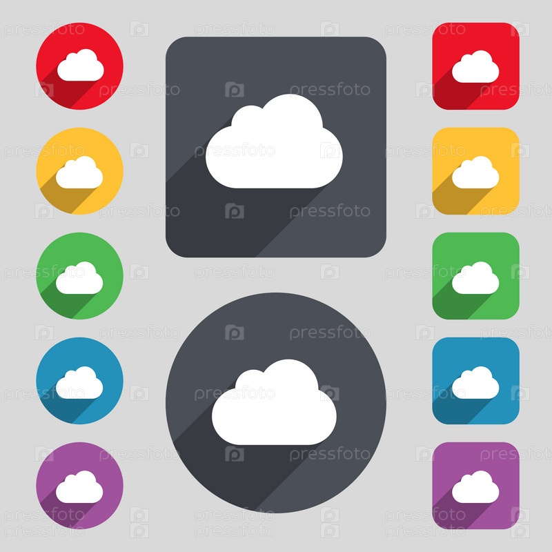 Облако значок знак. Набор 12 цветных кнопок и длинную тень. Плоский дизайн. Вектор