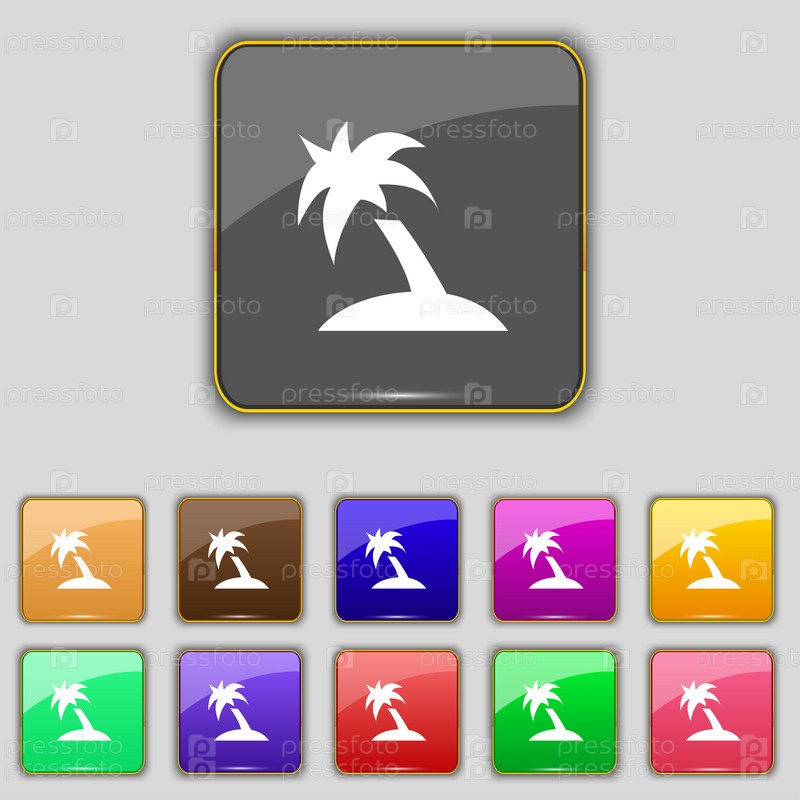 Пальма, путешествия поездки значок знак. Набор с одиннадцать цветные кнопки для вашего сайта. Вектор