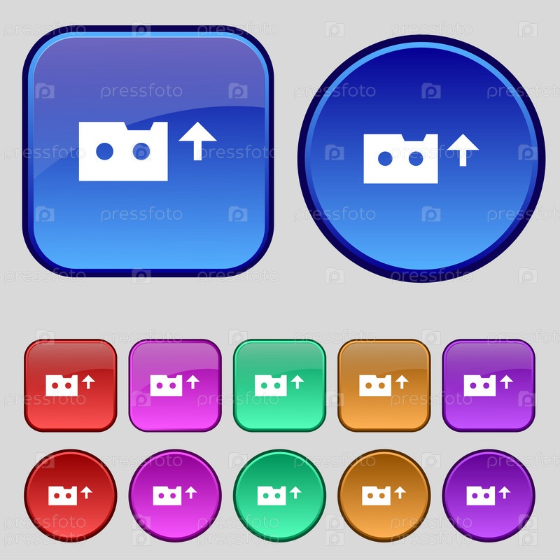 Аудио кассета значок знак. Набор из двенадцати марочных кнопки для вашего дизайна. Вектор
