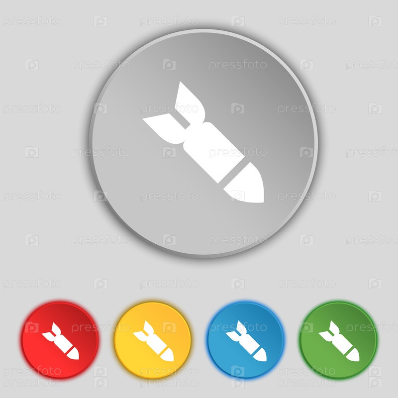 Ракета, ракетного оружия значок знак. Символ на пяти плоских кнопок. Вектор