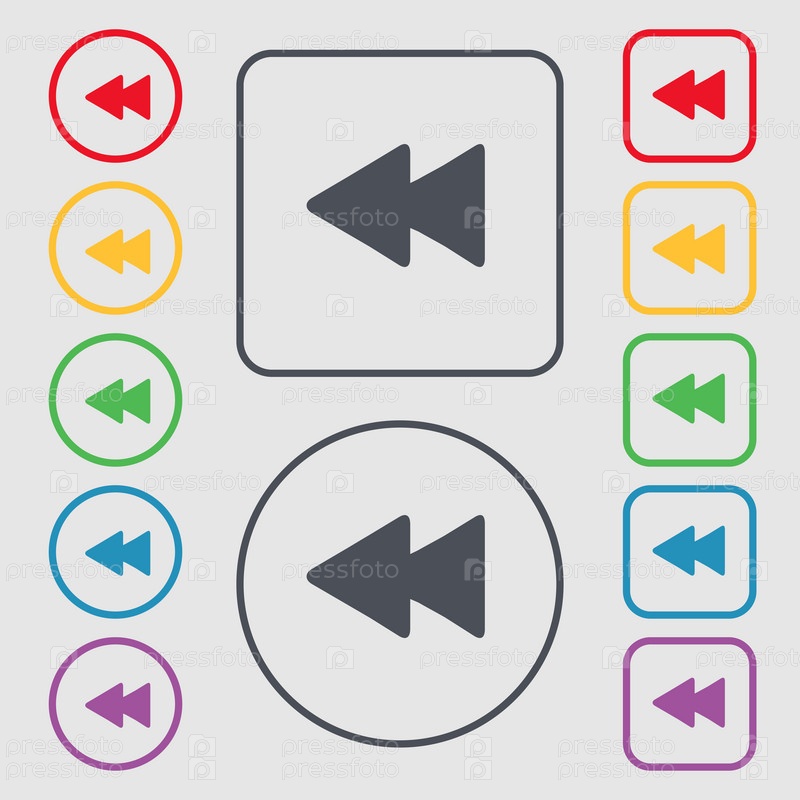 Перемотка значок знак. символ на круглых и квадратных кнопок с рамкой. Вектор