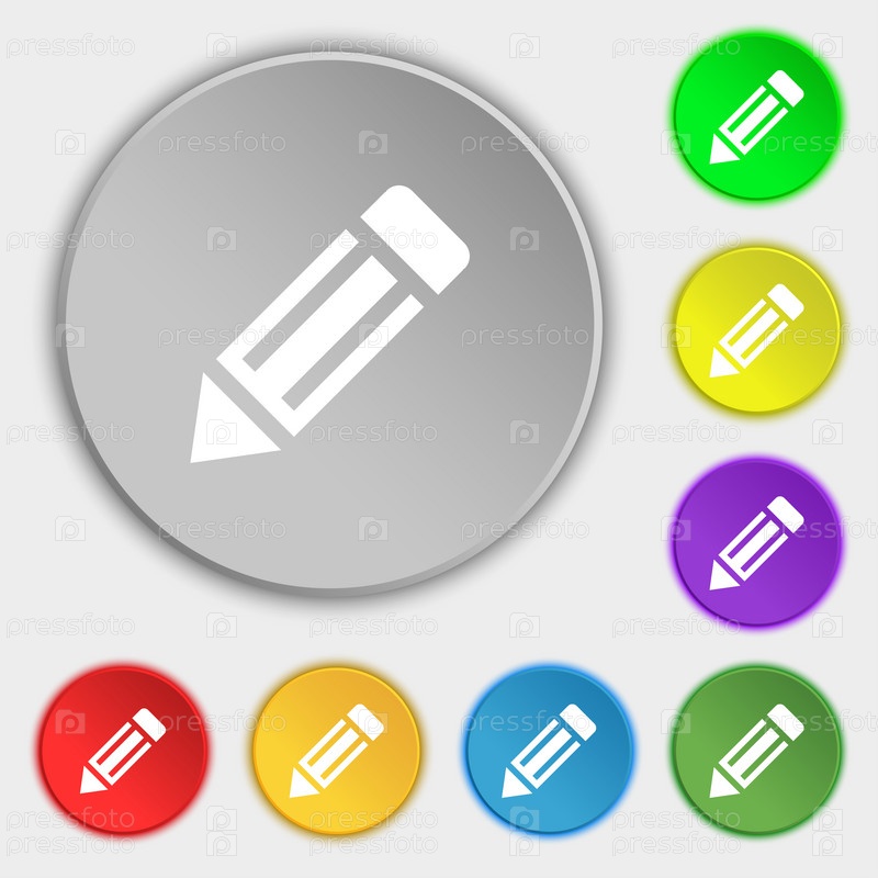 Карандаш значок знак. Символ на пяти плоских кнопок. Вектор