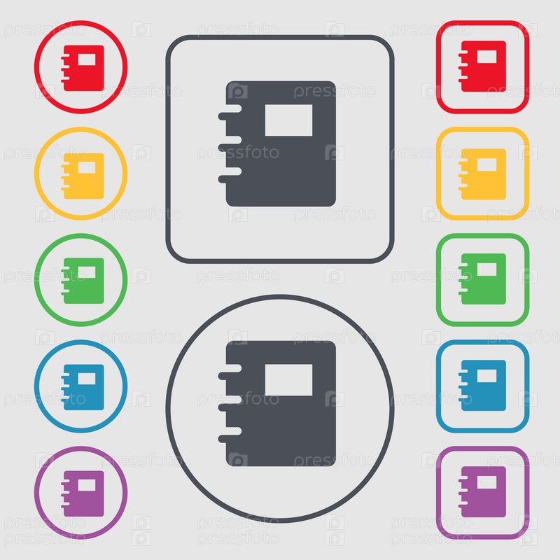 Книга значок знак. символ на круглых и квадратных кнопок с рамкой. Вектор