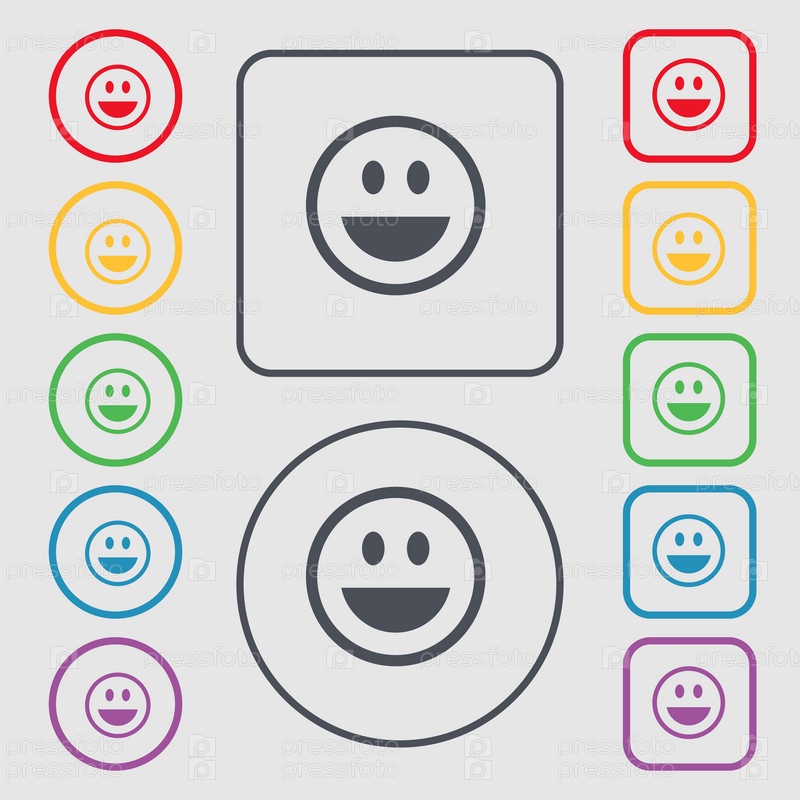 Смешные лица значок знак. символ на круглых и квадратных кнопок с рамкой. Вектор