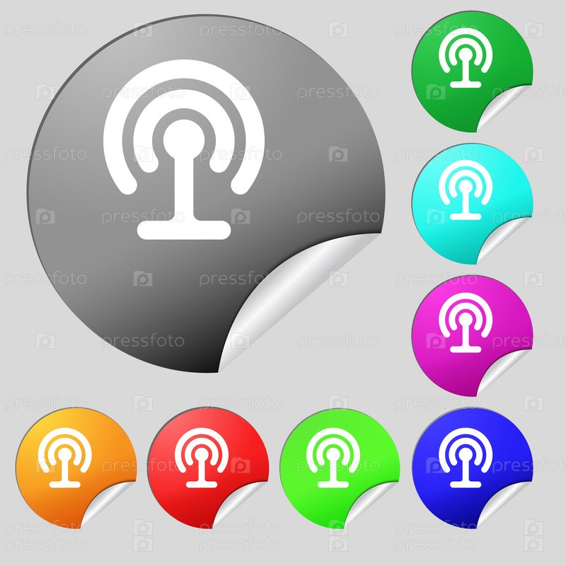 набор из восьми разноцветных круглых кнопок, стикеров. вектор