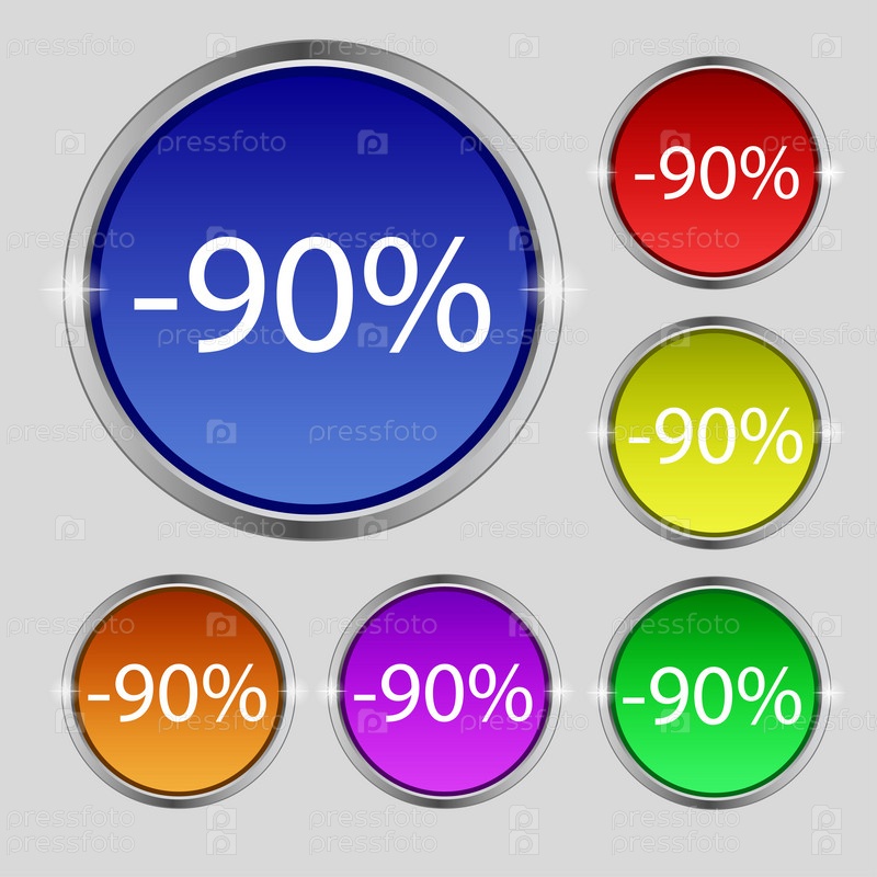 90% скидка знак значок. Продажа символ. Специальное предложение метка. Набор цветных кнопок вектор