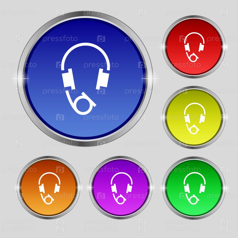Гарнитуры значок знак. Круглый символ на яркие красочные кнопки. Вектор