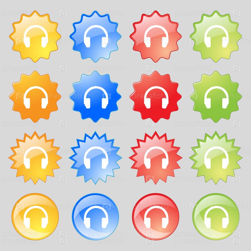 Гарнитуры значок знак. Набор из 14 кнопок разноцветного стекла с местом для текста. Вектор