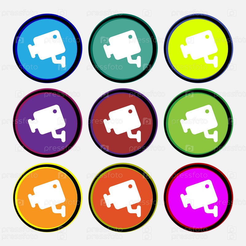Видео камеры значок знак. Девять разноцветных круглых кнопок. Вектор