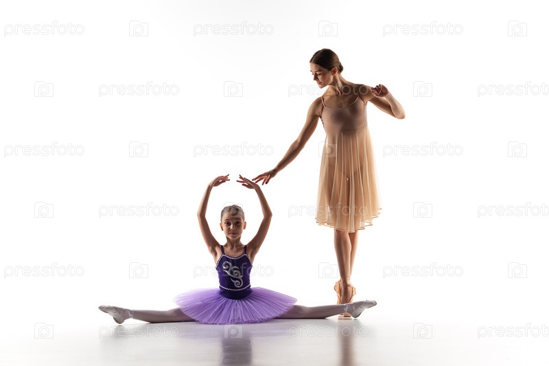 Маленькая балерина танцует с учителем