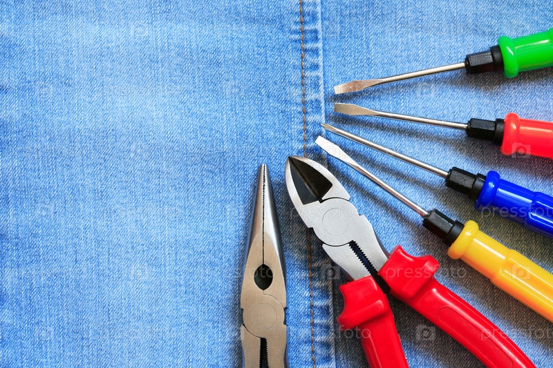 Набор инструментов на джинсовой ткани