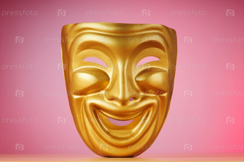 Маска комедии на розовом фоне